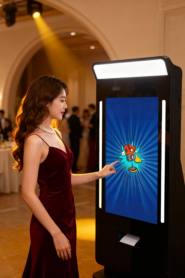 而這款極鏡設計的互動設備,正是打破傳統局限的核心亮點。不同於常見款的笨重與單調,它憑藉吸睛的燈光氛圍、超大屏幕的視覺張力,從外觀上就成為場地的「視覺焦點」;更別提其超越普通設備的多樣化打印效果,既能匹配高奢場合的精緻感,也能撐起科技活動的前衛感,讓活動互動從「常規環節」升級為「記憶亮點」,徹底拉滿現場的可塑性與體驗感。