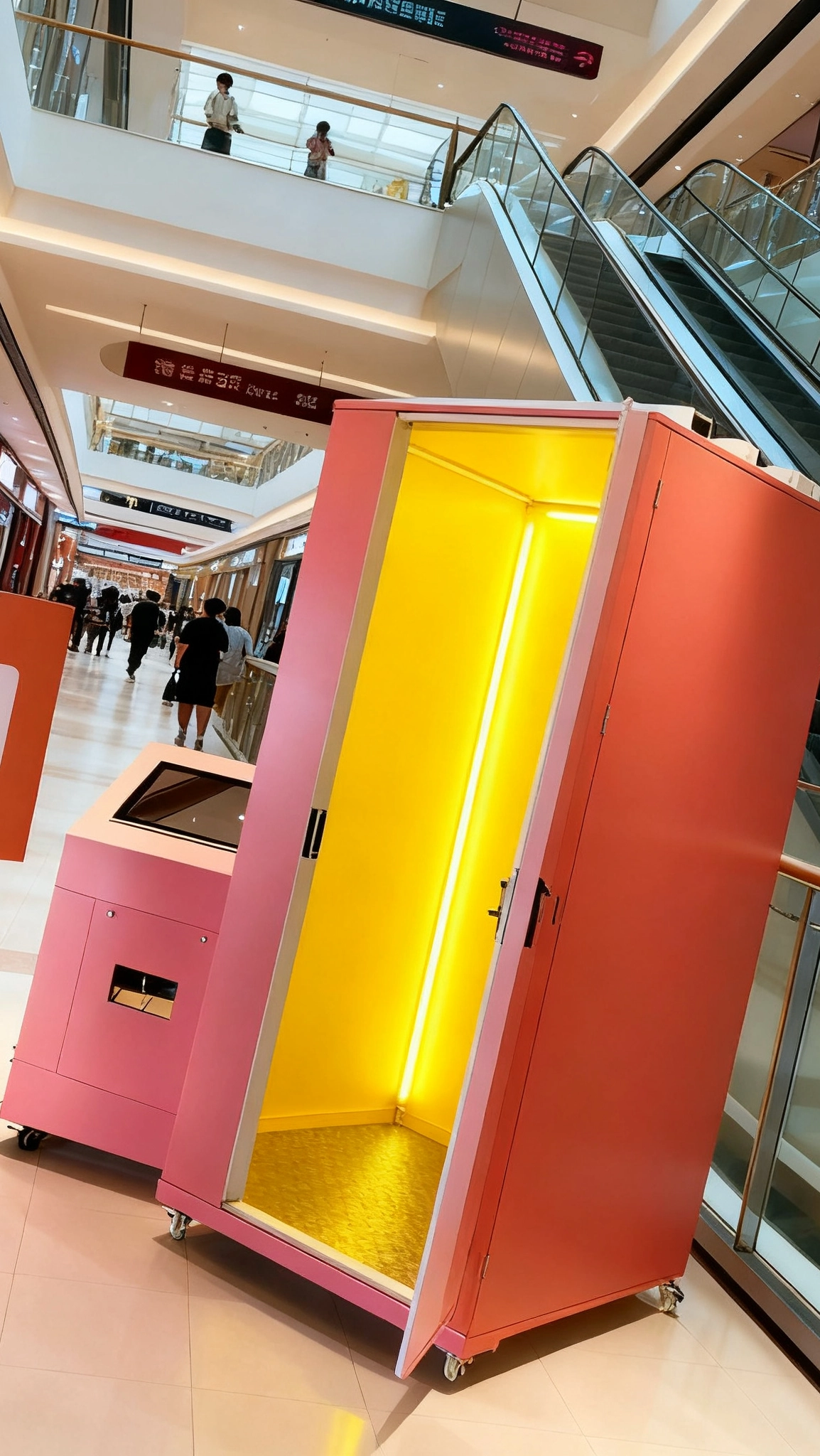 兩米高挺機身自带「鎮場感」,置於宴會、商展等場合即成視覺焦點,輕鬆承接多人同框拍攝;流光亮面為主材,霧面磨砂邊框升級質感;鏡緣暗藏冷光燈帶,搭配觸控介面,科技感落地流暢體驗、列印等功能模組與各類配件,完美契合高端場景需求。