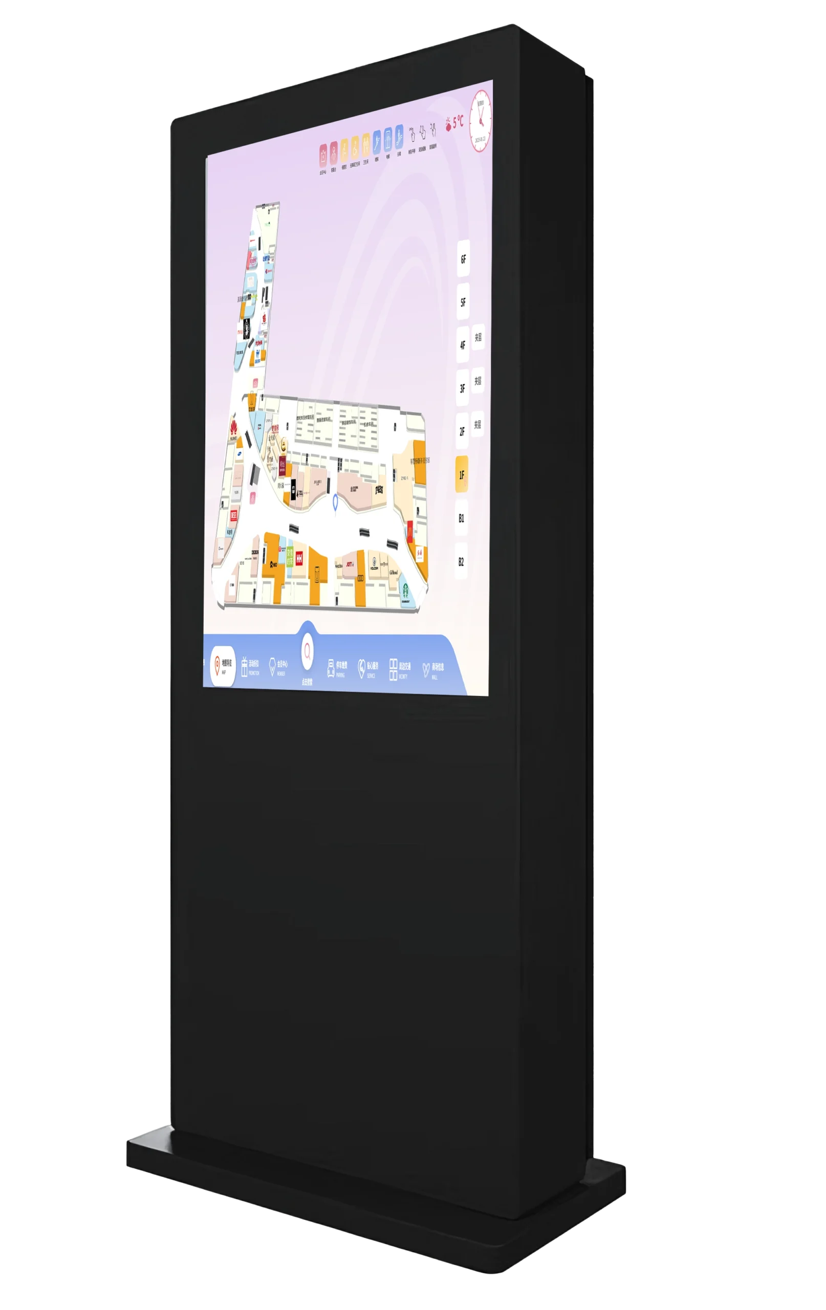 採用「觸控式顯示器 + 互動終端」組合,支持用戶主動查詢路線、搜索設施 / 商店 / 展覽信息,適用於商場、商業大廈、博物館等需用戶自主獲取信息的場景。