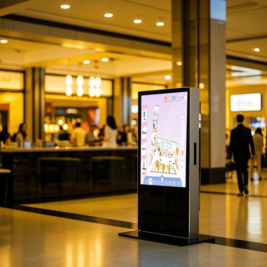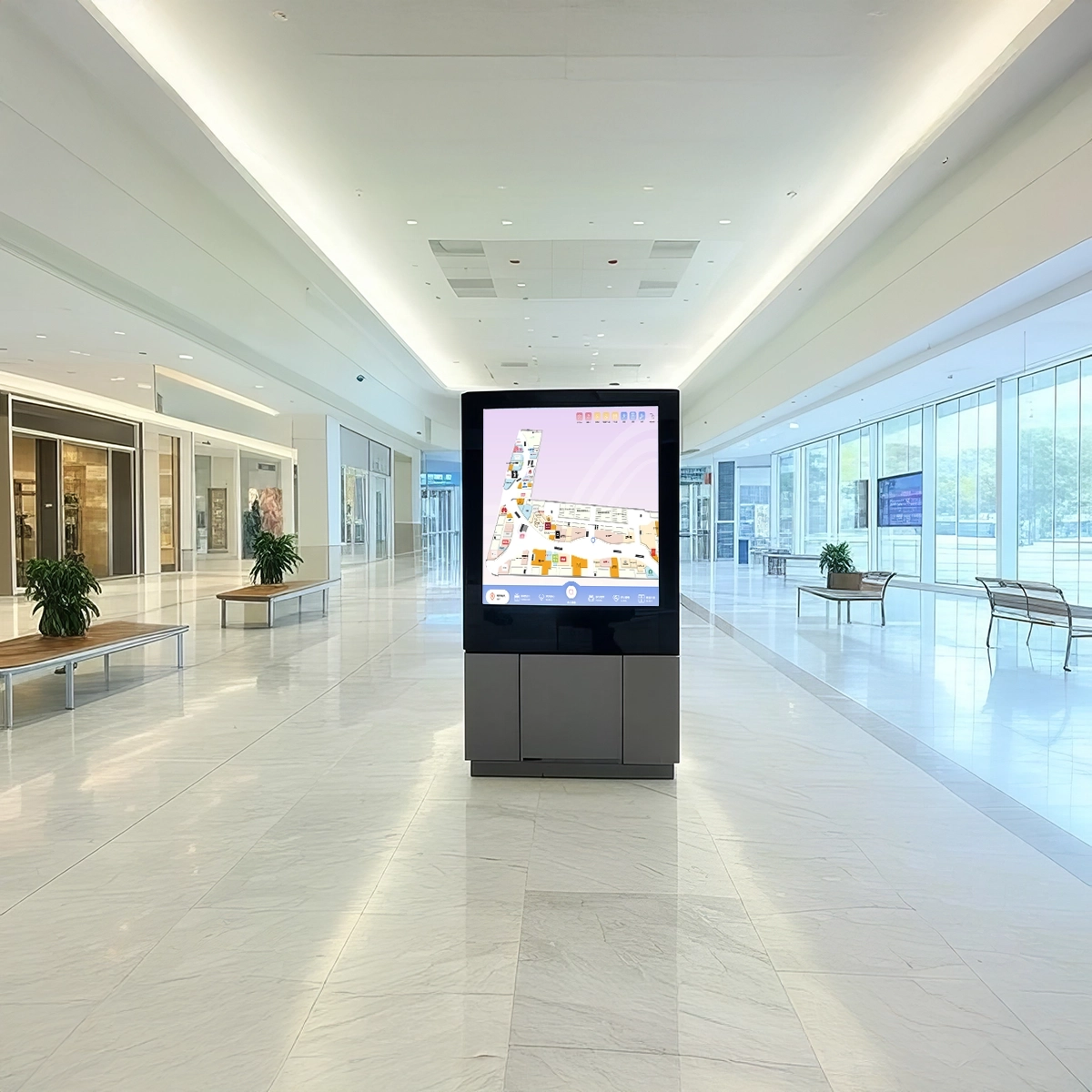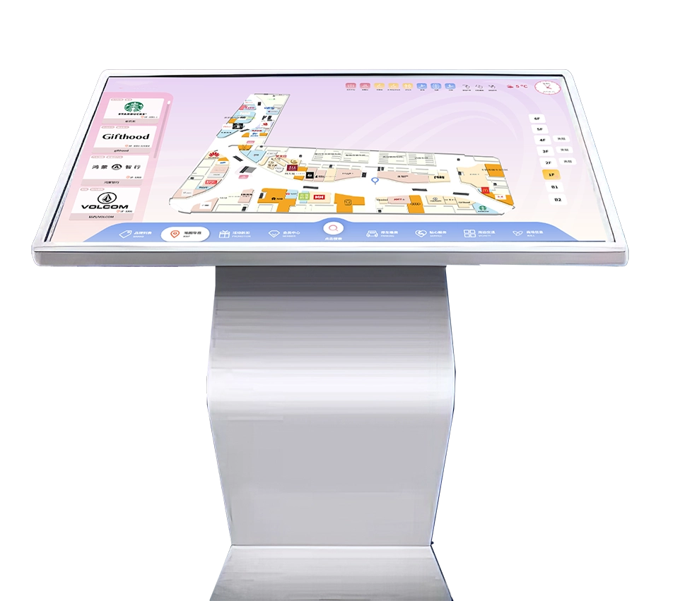 採用「觸控式顯示器 + 互動終端」組合,支持用戶主動查詢路線、搜索設施 / 商店 / 展覽信息,適用於商場、商業大廈、博物館等需用戶自主獲取信息的場景。