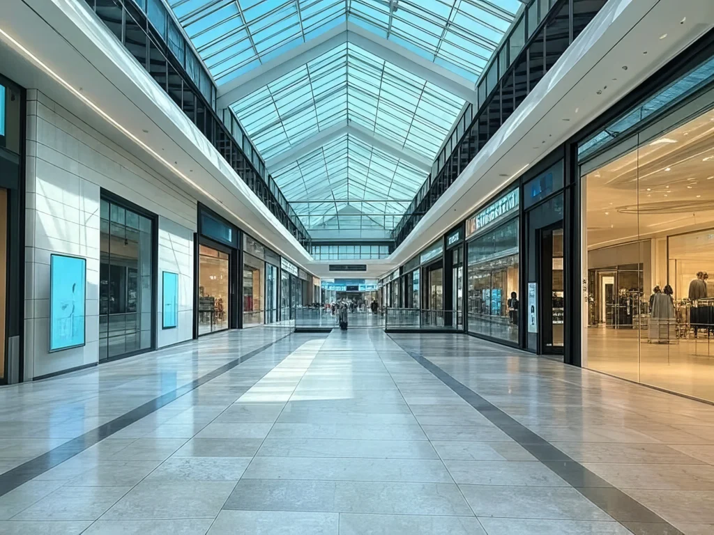 選用「大尺寸戶外 LED 屏(P8/P2.6 規格)」,具備高亮度、廣視角特性,可覆蓋遠端視線,用於商場戶外區域吸引客流。